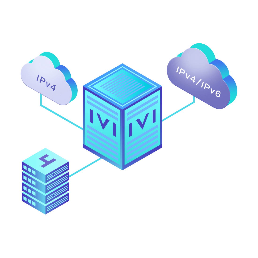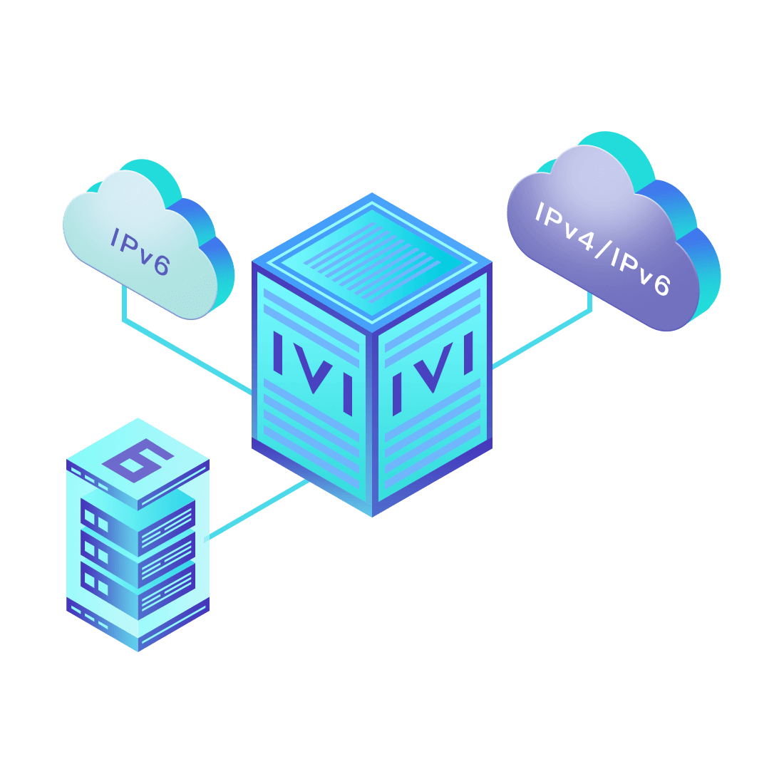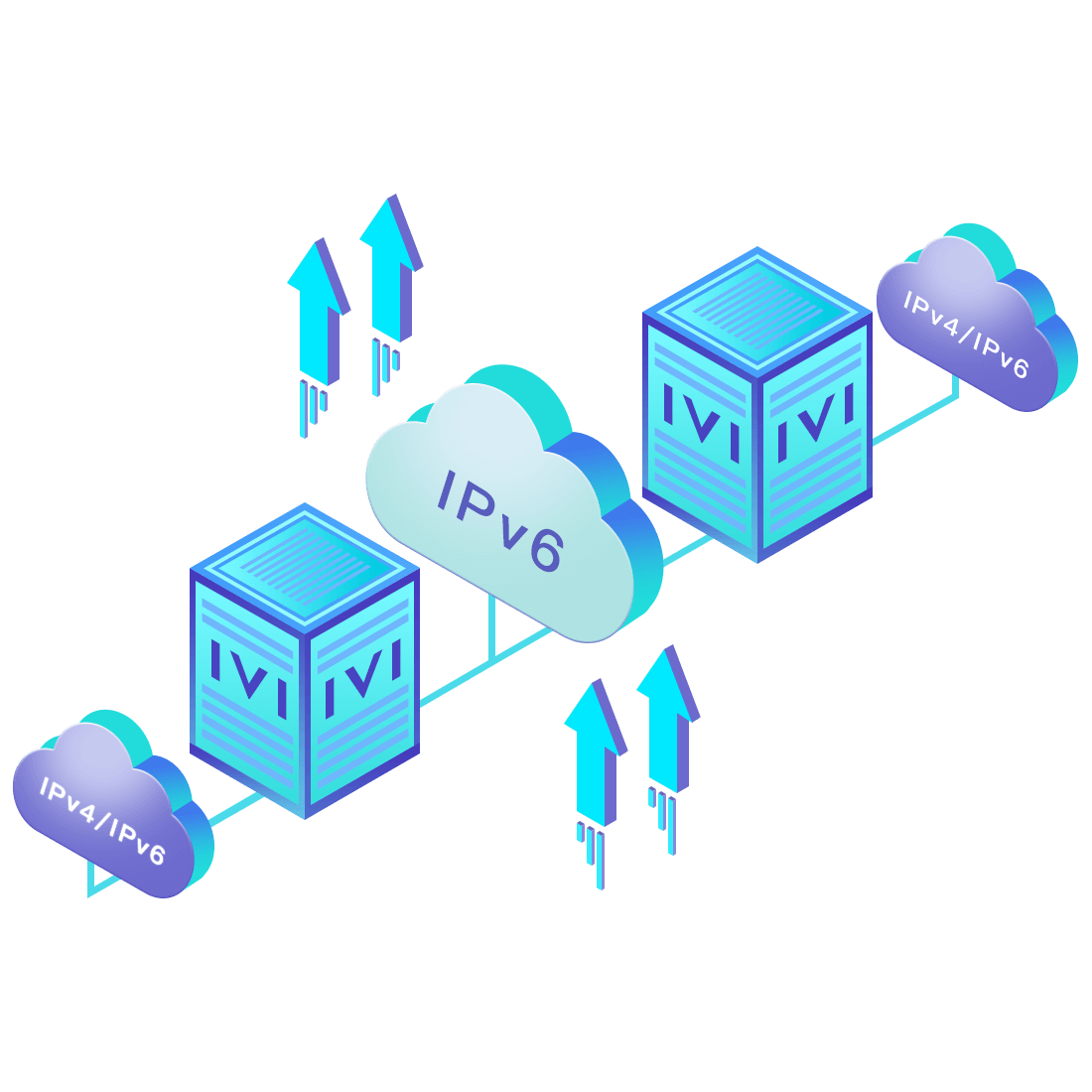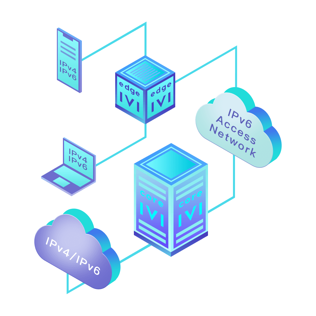 對正在進行IPv6整體升級規(guī)劃的運營商,應用IPv6升級方案2.5,通過IVI無狀態(tài)翻譯技術(shù)和純IPv6接入網(wǎng)絡,為雙棧客戶端和雙棧服務器提供連通服務。